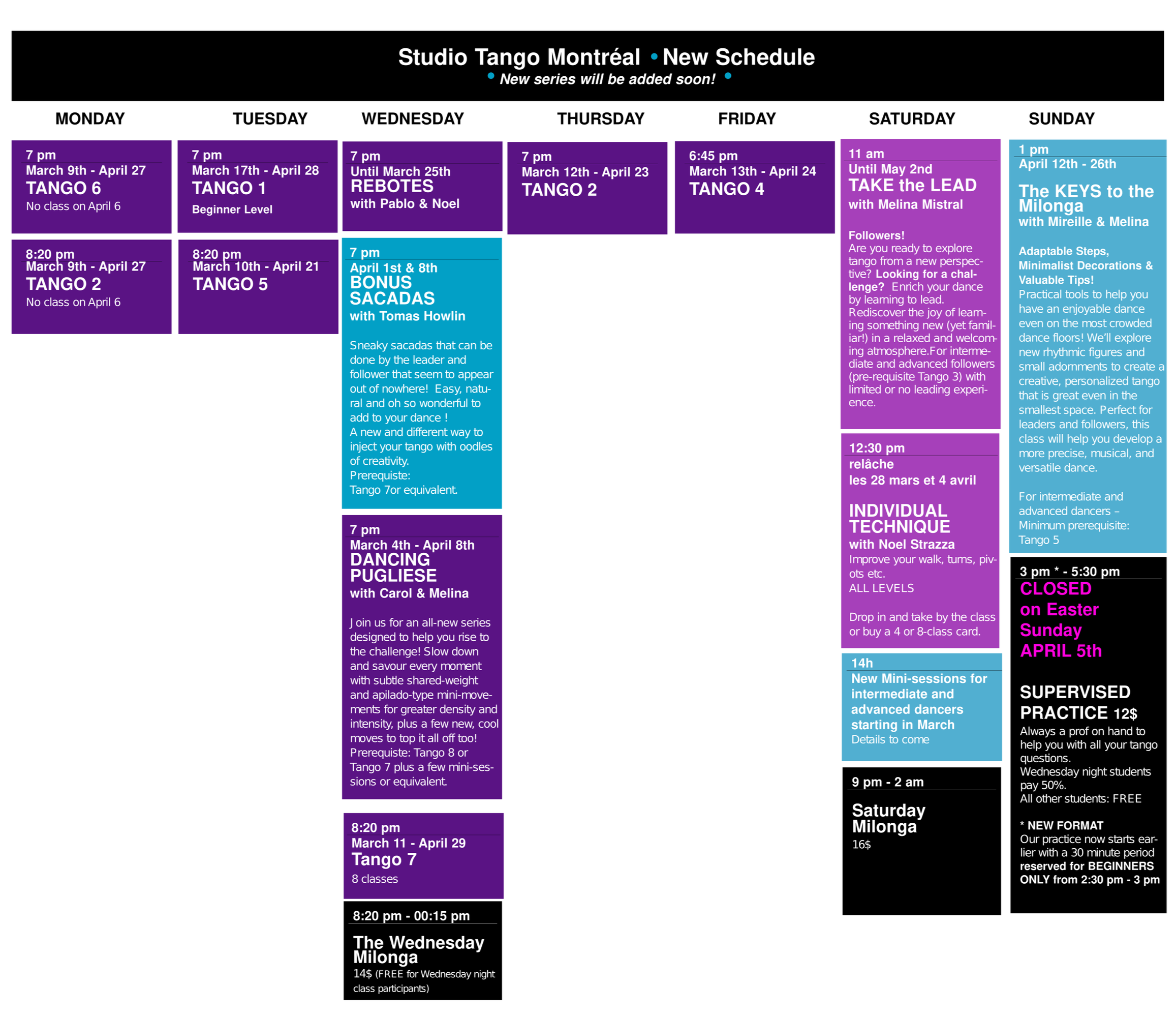 Full-time students: Send a copy of your current student ID to info@studiotango.ca to receive a discount code for 15% off)