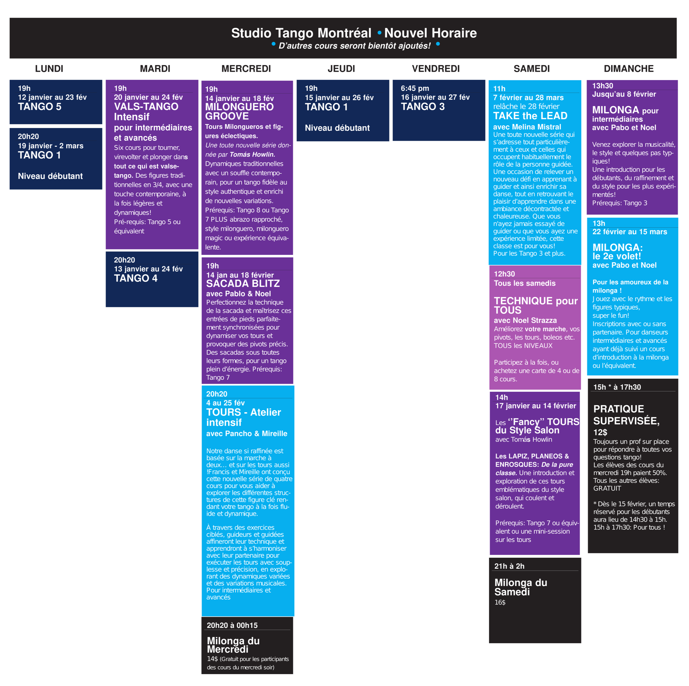*Rabais de 5 $ si payé par transfert interac à studiotango@gmail.com (mot de passe: tango)