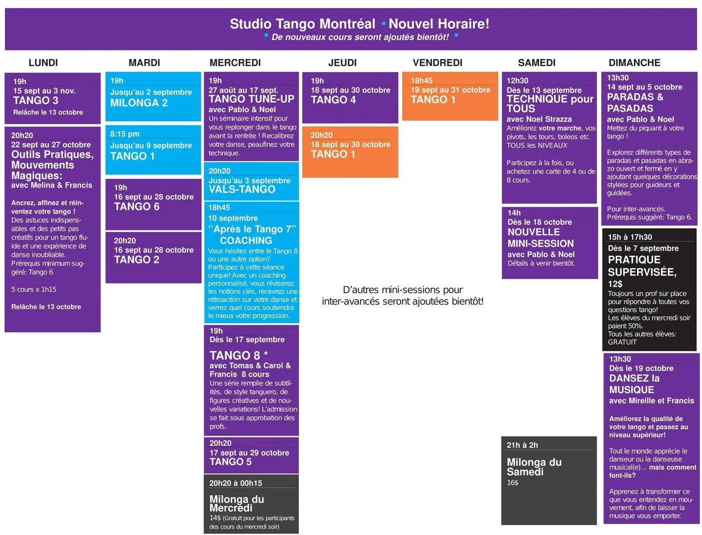 Studio Tango Montréal boasts a relaxed and easy-going environment, a dynamic team of professional teachers, and the most complete program of Argentine Tango classes in North America today.