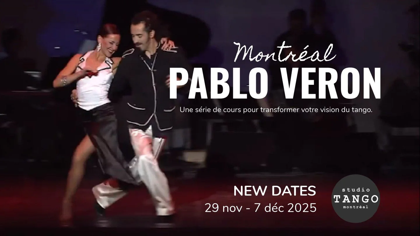Pablo Veron, the dancer's dancer, the star of the movie The Tango Lesson, of the show Tango Argentino, as well as of countless other productions will be back in Montreal to give workshops during a 10-day period.