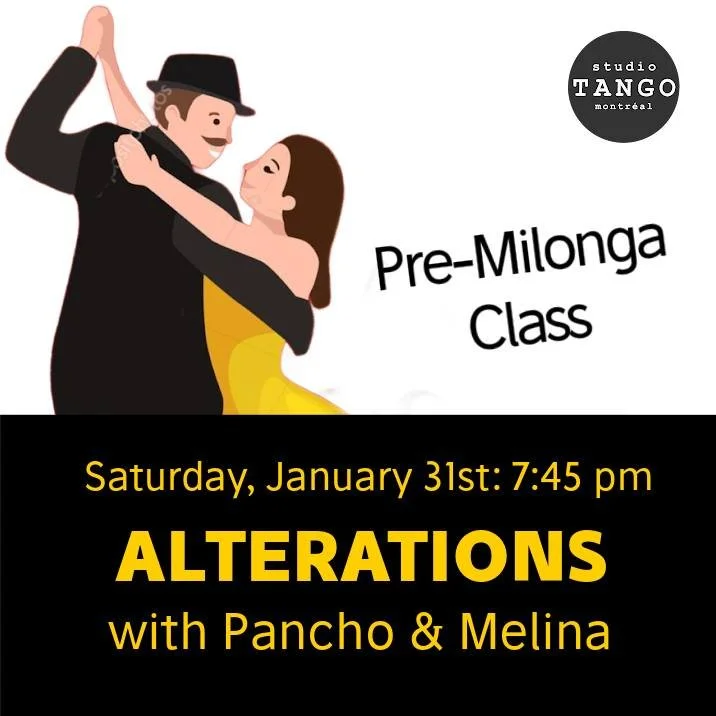 Every month or so, a pair of our teachers give a special class for intermediate and advanced dancers, just before the Saturday milonga! Come alone or with your dance partner - everyone is welcome.